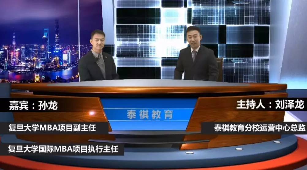 复旦大学MBA项目副主任兼复旦国际IMBA项目执行主任孙龙老师8月1日做客泰祺直播间,从多个方面与大家分享就新年度的招生政策及项目特点,主持人也问了众多考生关心的面试问题。